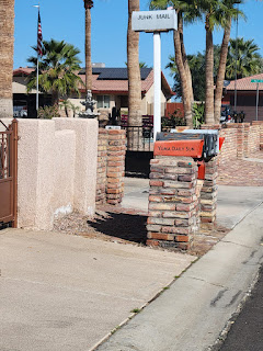 This week we are back in Yuma visiting (and mooch-docking) on our friend's, Gary and Marleen's, lot. Some may ask "what is mooch-docking? Well according to RV Life, Moochdocking means you are boondocking or camping for free on your friends’ or family’s property, most often their driveway. That is exactly what we are doing!!
